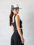 Our hats feature an internal elastic band for a comfortable fit and are designed with intricate detailing on the underside of the brim for added style.