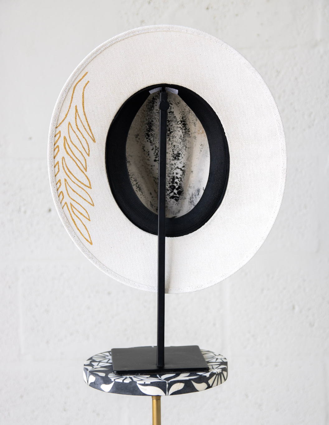 Our hats feature an internal elastic band for a comfortable fit and are designed with intricate detailing on the underside of the brim for added style.