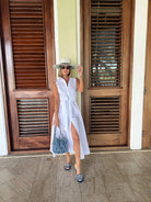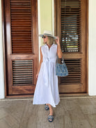 This elegant midi dress is made of 100% soft breathable cotton, offering a perfect blend of comfort and style.