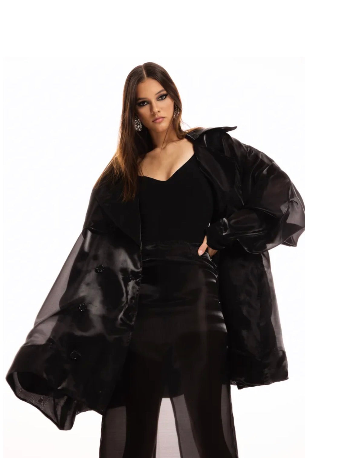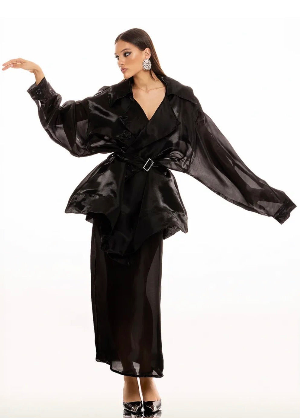 Fluid, transparent, and undeniably captivating. The Orpheus Skirt is designed to flow with every step, creating a soft, sensual movement that elevates your entire outfit. Its sheer finish invites layering and styling freedom, making it perfect for playing with contrasts—minimal underneath, dramatic on top. A piece made for nights, moods, and unforgettable entrances.