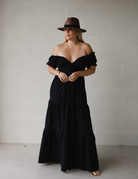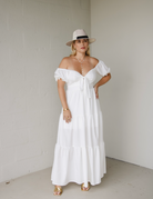 Our best selling ruffle dress never disappoints! Made to fit most, this wrinkle resistant fabric makes it the perfect travel dress.