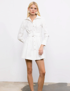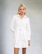Indulge in luxurious simplicity with our Serena Dress. Made from smooth cotton, this white mini dress exudes elegance and complements any figure with its flattering fit. Complete the look with the included belt for a touch of refinement. Perfect for any occasion, this dress is a must-have for any sophisticated wardrobe.