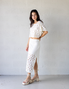 Model is 1.77 cm tall, 83 cm bust, 61 cm waist, 91 cm hips and wears size S.
