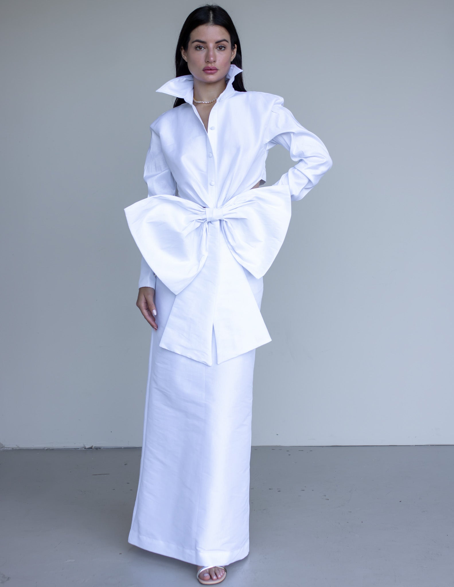 Our #1 modular dress. This dress represents the versatility, femininity and sensuality that defines the brand. Composed of three pieces that you can wear separately: top, shirt and bow. Combine it with your favorite accessories and take it to places more beautiful.