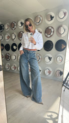 A modern twist on a classic staple — this crisp white, 100% cotton cropped button-down shirt features a structured collar, long sleeves with buttoned cuffs, and a flattering waist-length cut. Perfect for pairing with high-rise pants or skirts, it blends tailored polish with effortless, everyday style.
