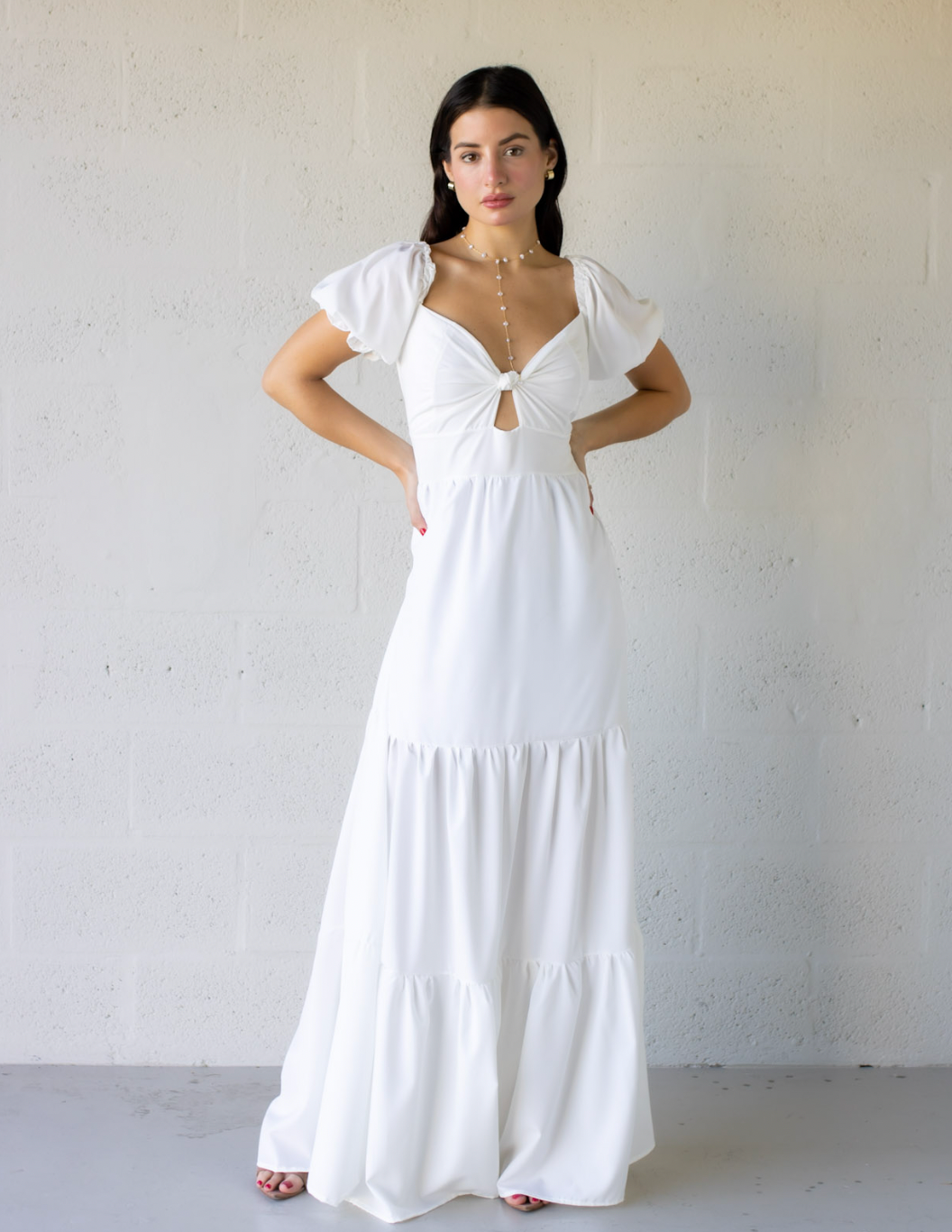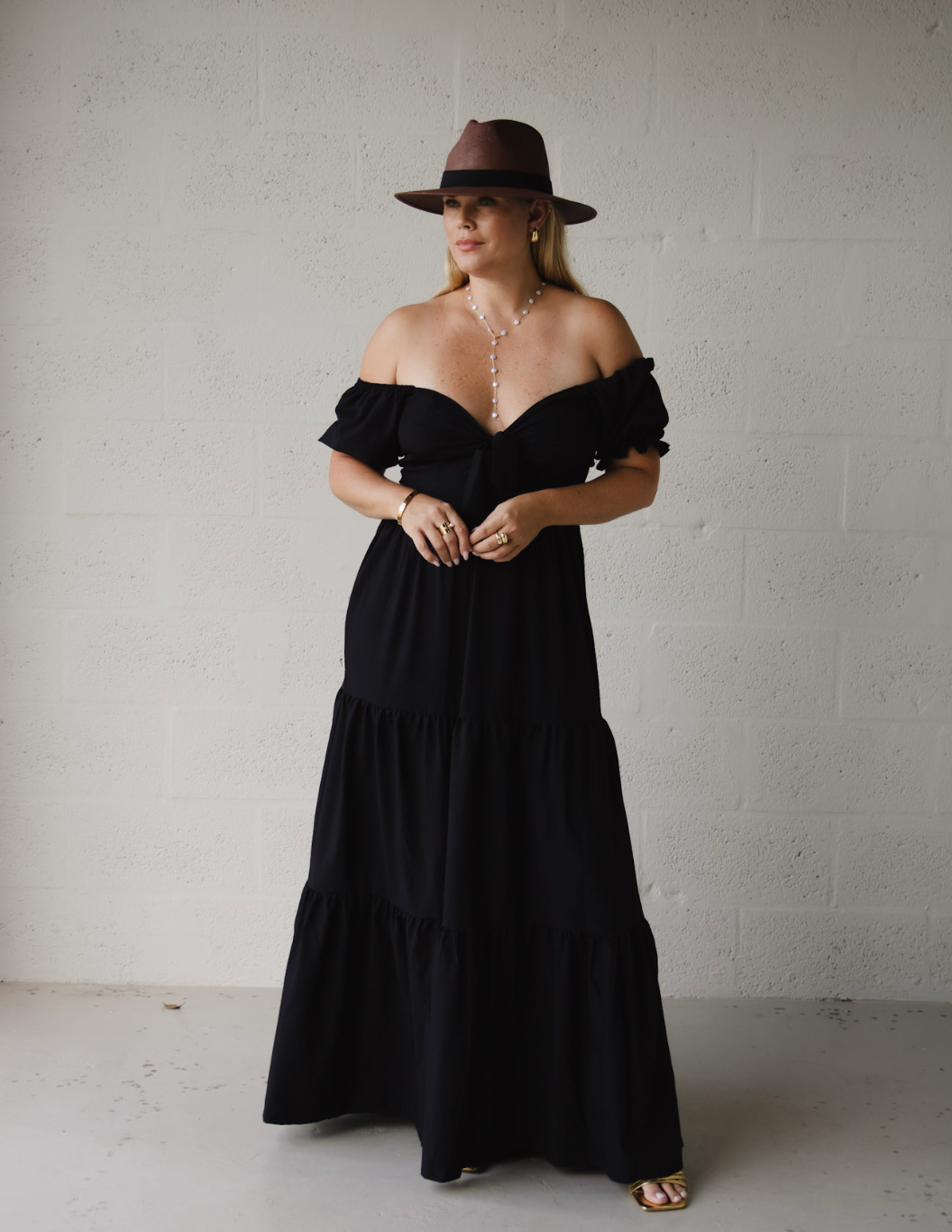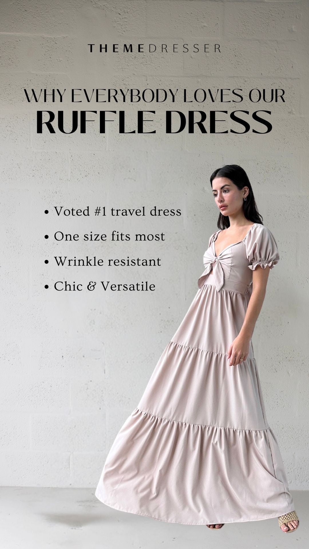 Our best selling ruffle dress never disappoints! Made to fit most, this wrinkle resistant fabric makes it the perfect travel dress.