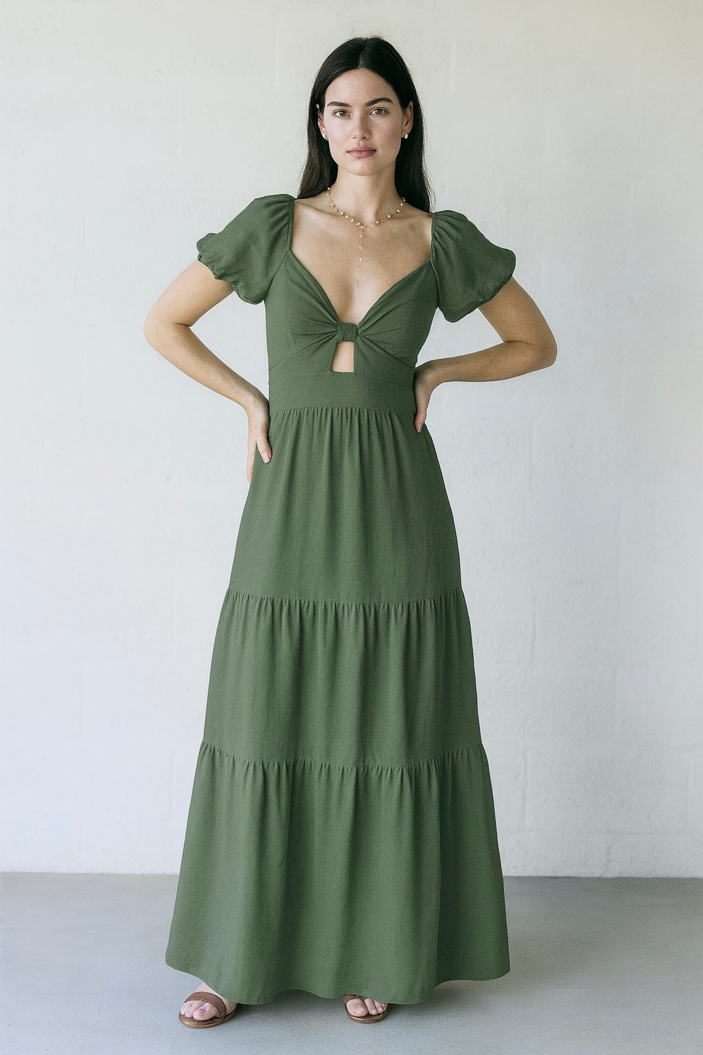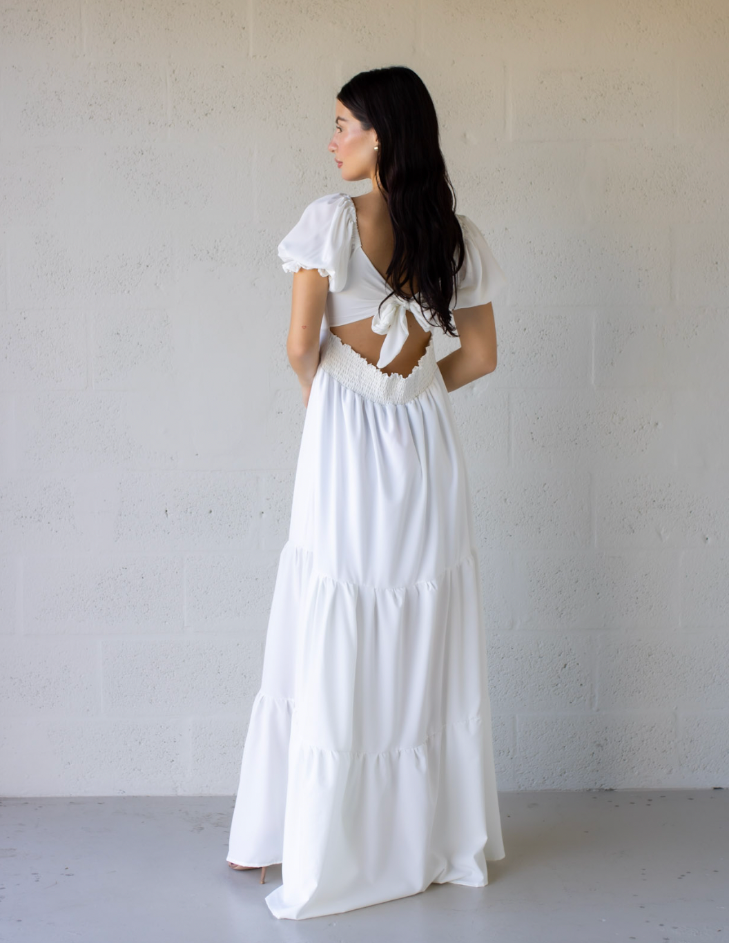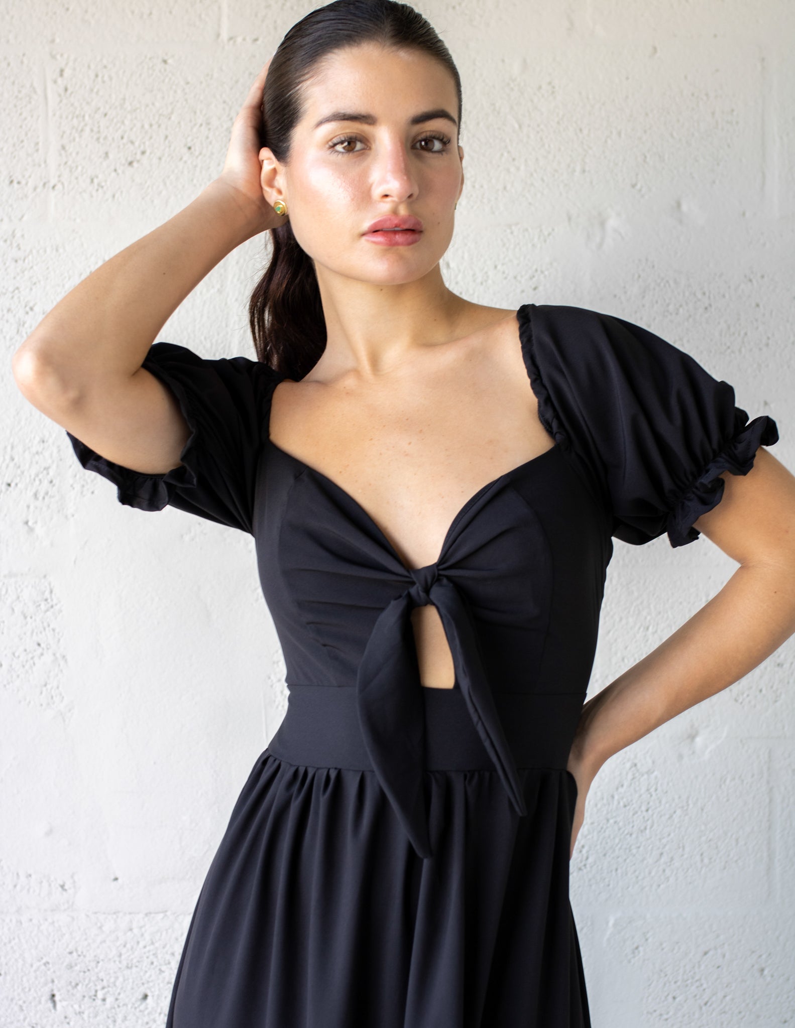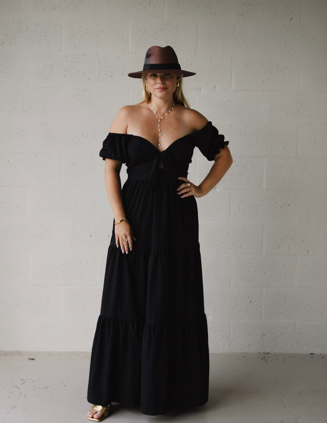 Our best selling ruffle dress never disappoints! Made to fit most, this wrinkle resistant fabric makes it the perfect travel dress.