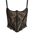 Corset crafted in lace with a soft, skin-toned tulle lining that adds delicacy and comfort. It features removable, adjustable straps for added versatility, along with gold-plated hardware that enhances its sophisticated design. The lace-up back allows for a customizable fit, while spiral memory boning offers support and flexibility that adapts to every silhouette.
