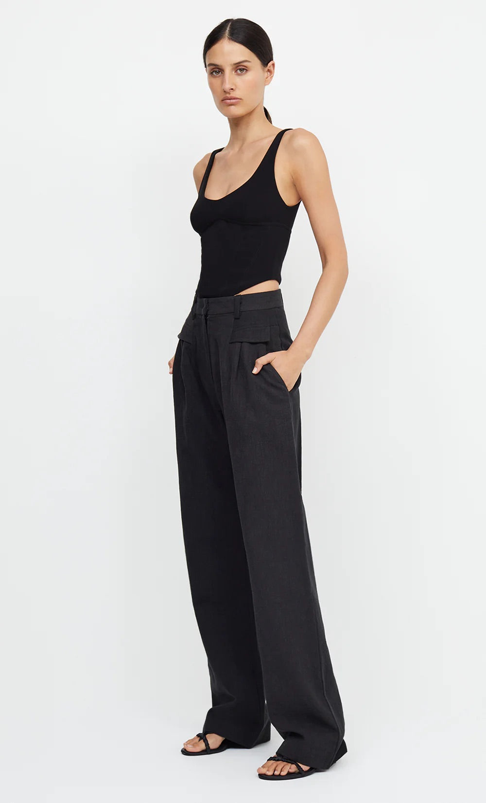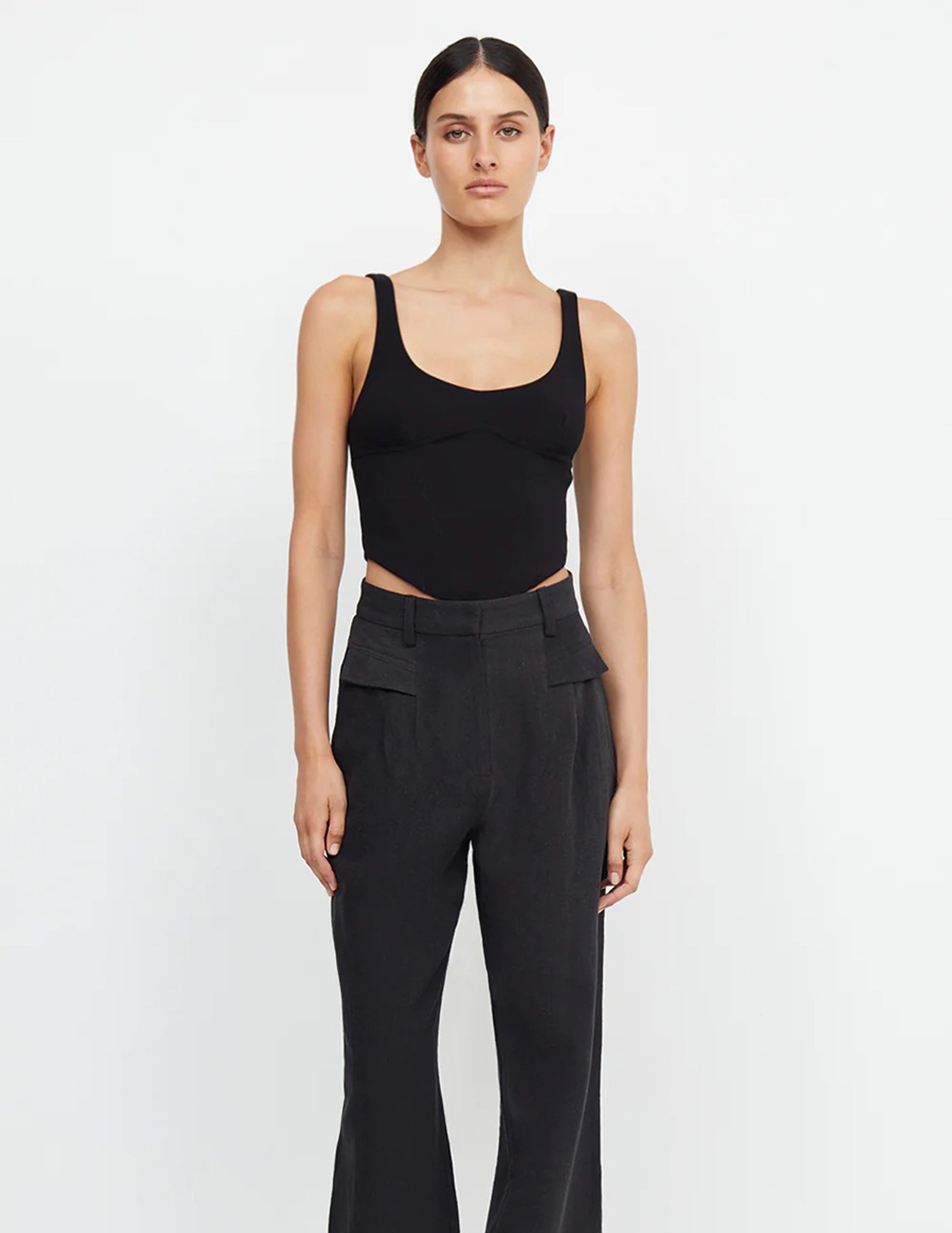 Cut in a fitted and cropped corset silhouette, the Marisol Bodice is an easy-to-wear classic style. The scoop neck top features a curved hem and bias bind at the under bust. Styled with our Harlow Pant. This garment is certified Australian made.