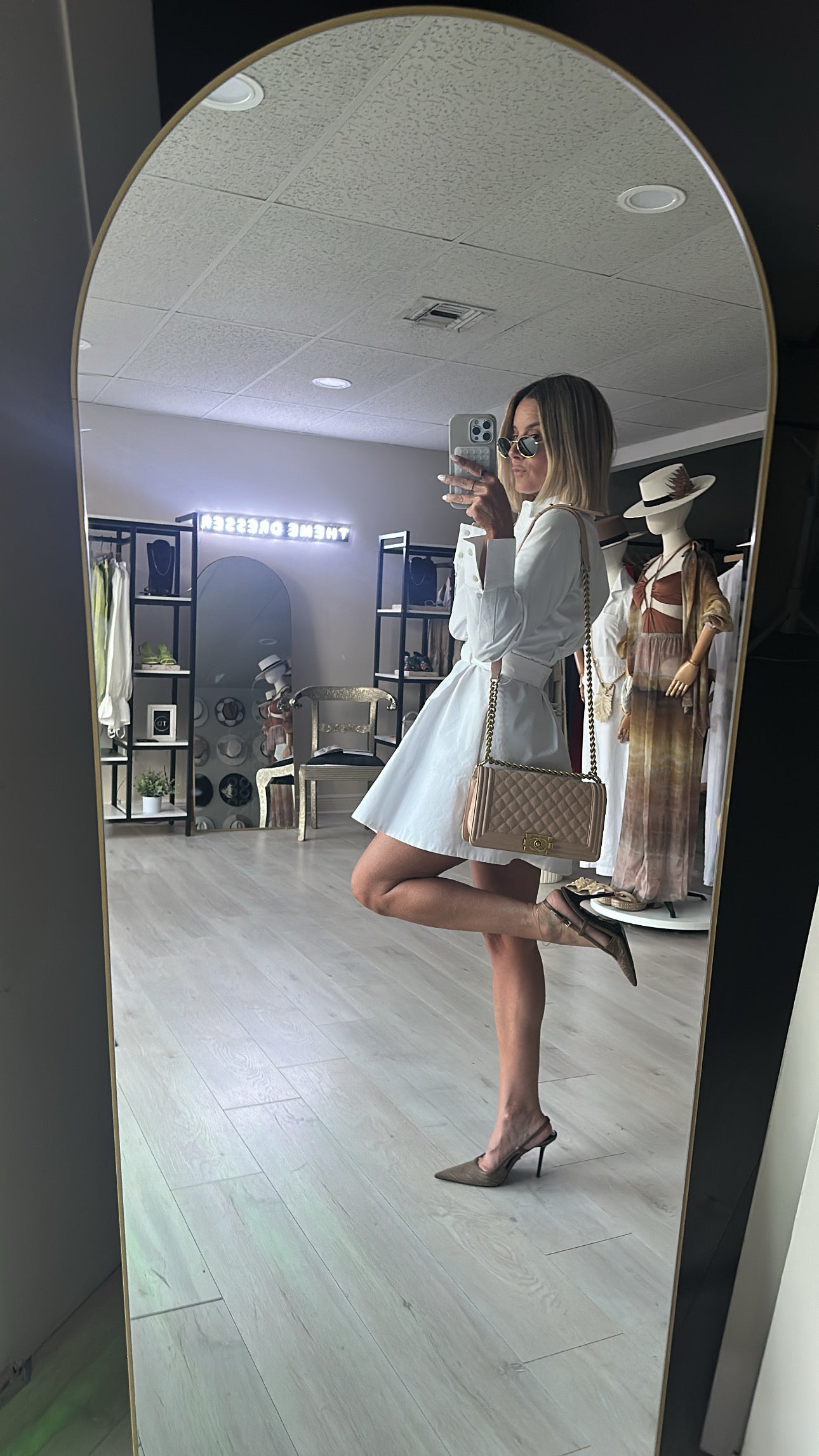 Meet our Serena Dress — the effortless white mini every woman needs in her closet.
