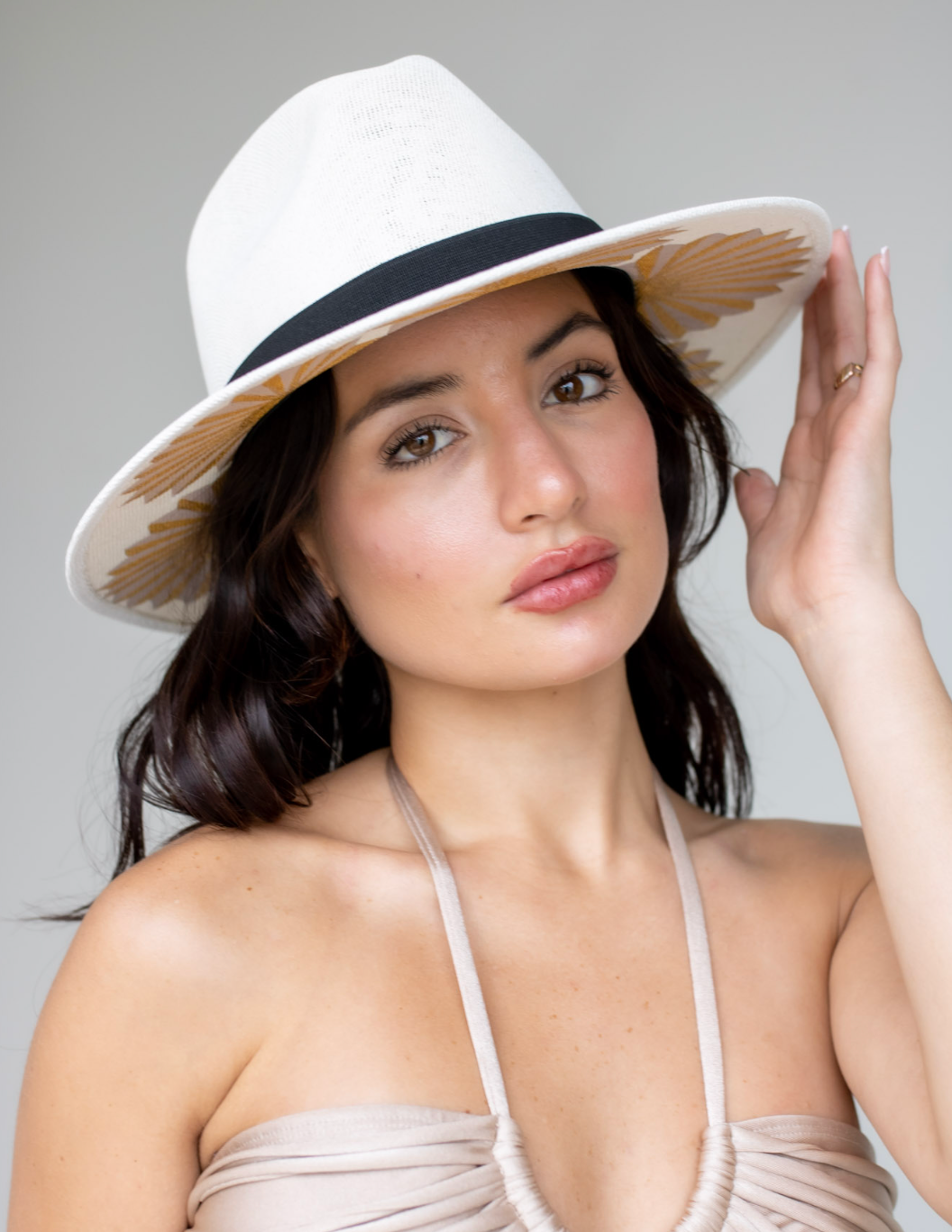 Our hats feature an internal elastic band for a comfortable fit and are designed with intricate detailing on the underside of the brim for added style.