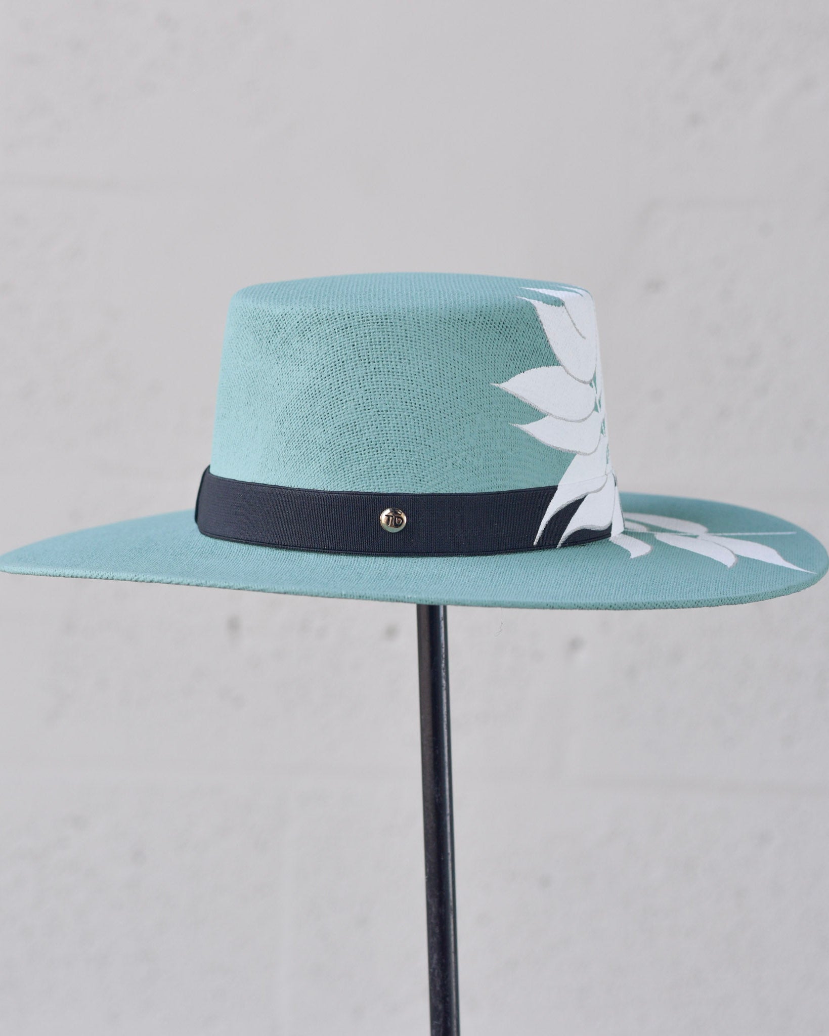 The Palmita Solid Cenote Cordobés embodies natural elegance with a fresh aqua tone reminiscent of hidden jungle waters. Crafted on canvas and finished with geometric white detailing, it’s a bold yet graceful design — perfect for women who carry the wild with poise.