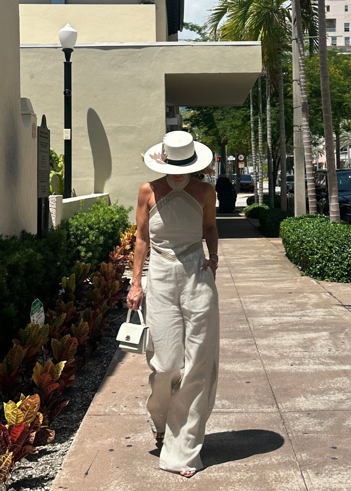 Colombia Moda Exclusive – The Romina Jumpsuit is pure sophistication in motion. With a halter neckline, side slits, and body-skimming lines, it brings effortless allure to summer nights or coastal escapes.
