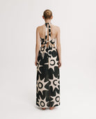 Make a statement in this bold linen-blend maxi dress, designed with comfort and effortless style in mind. Featuring a high halter neckline with adjustable tie-back detail, the dress flatters the shoulders while offering a secure and customizable fit.