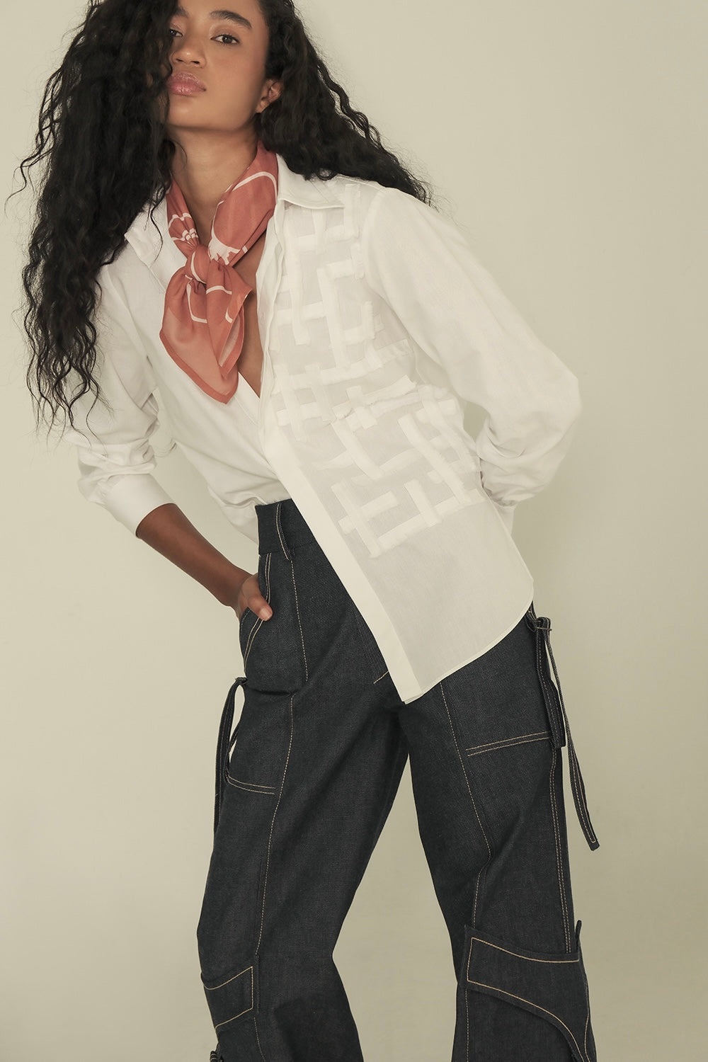 A relaxed silhouette redefined by craftsmanship. The Celaje Shirt is made from 100% certified cotton — breathable, conscious, and refined. Its standout detail: an artisanal technique where delicate geometric motifs are hand-crafted directly onto the fabric by carefully removing threads, creating a soft raised texture that makes each piece one of a kind.