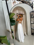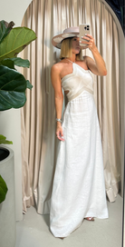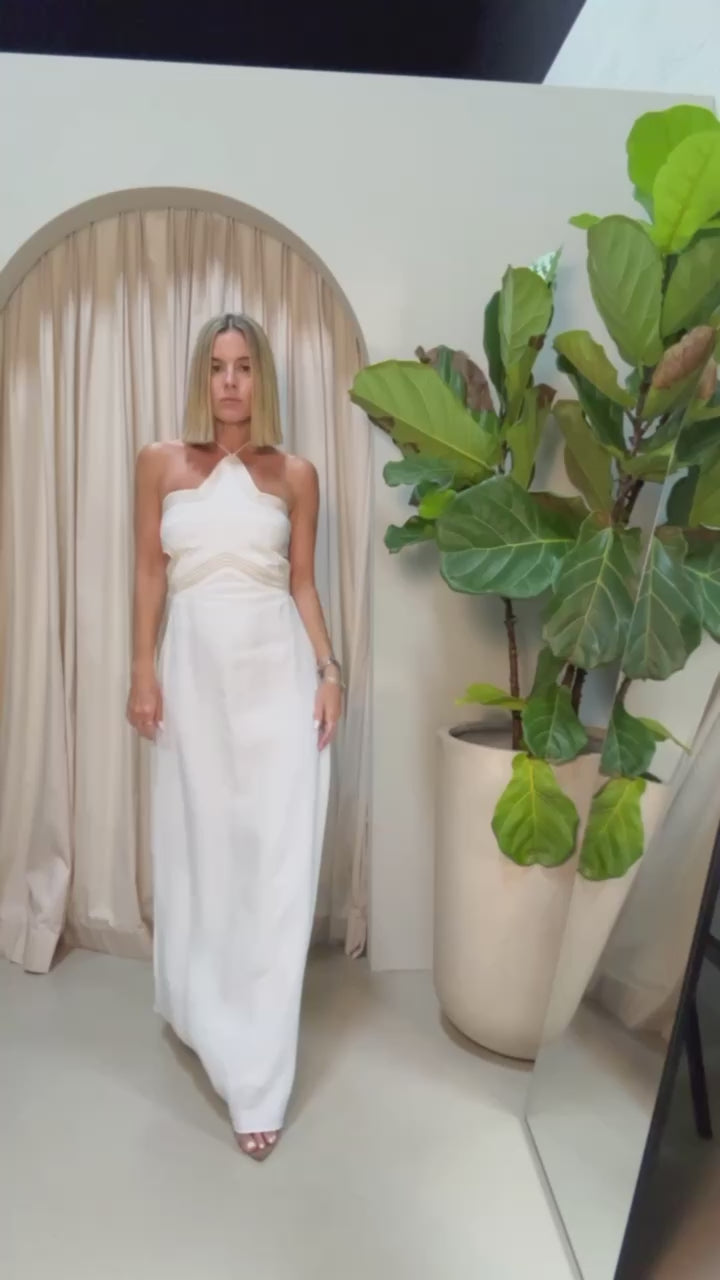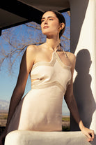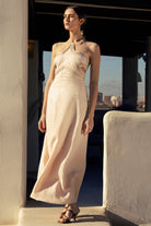 Colombia Moda Exclusive – Sculptural and soft, the Estrella Dress features an asymmetrical neckline, side cut-outs, and a flattering column silhouette. A dreamy statement in sun-washed tones for luminous summer evenings.