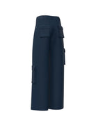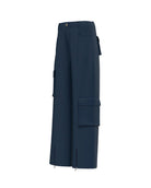 Wide-leg cargo pants with a modern, functional design—perfect for those who value comfort without compromising style. Featuring a mid-rise waistband and a front closure with a branded button, they include oversized cargo pockets on both sides and flap-style back pockets for a balanced casual–yet–refined look. Zipper details at the hem allow for adjustable openings, adding versatility to the design.