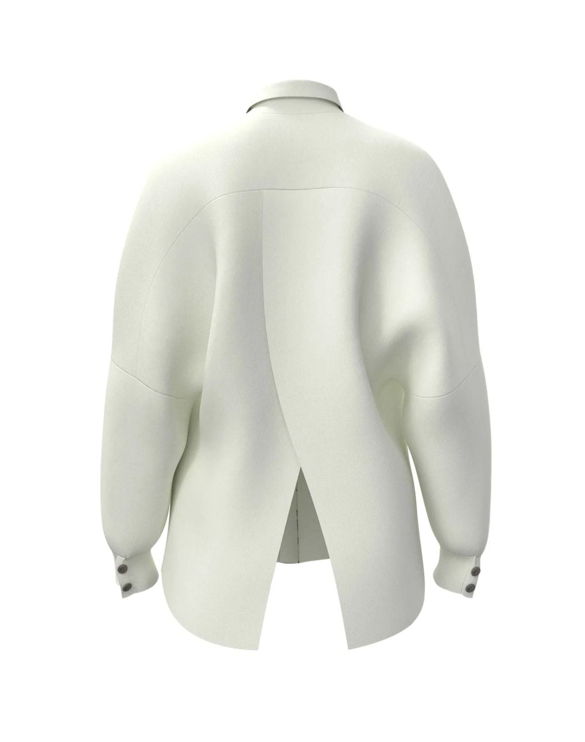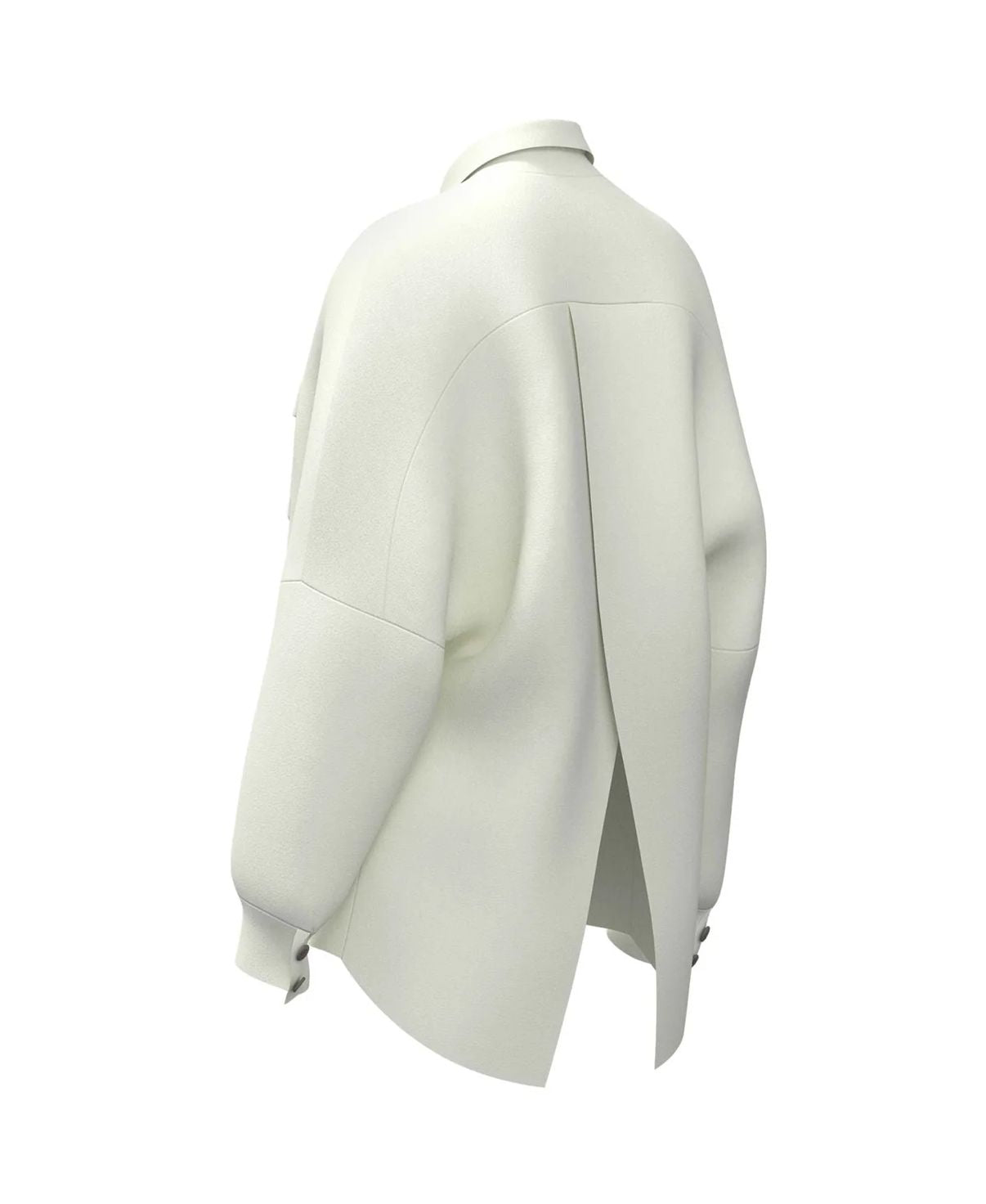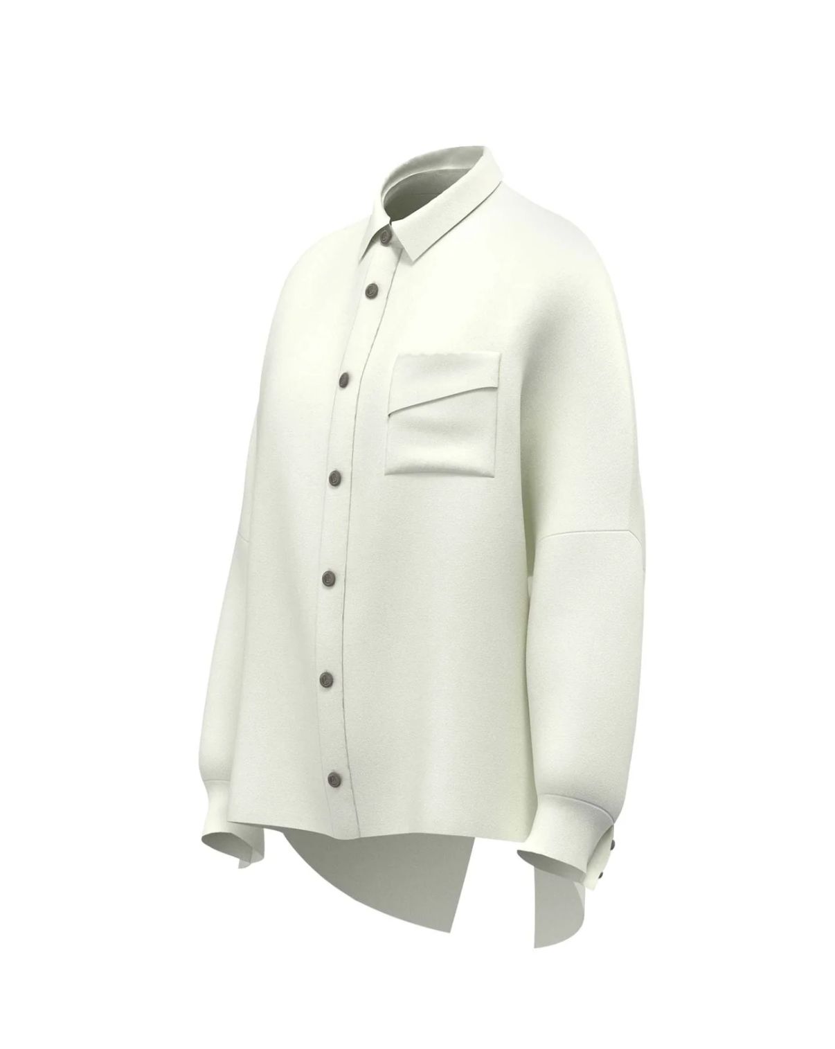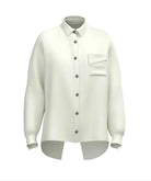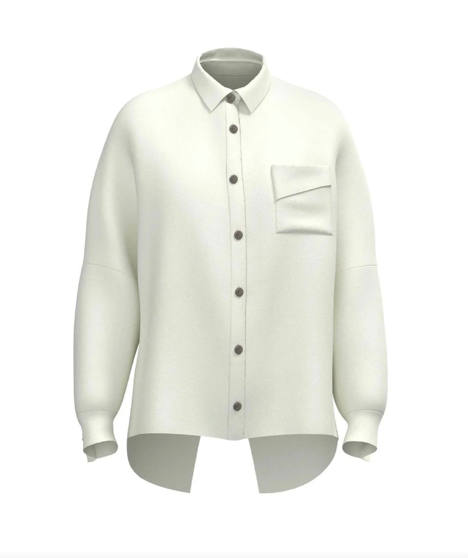 Oversized shirt with a relaxed silhouette, slightly fitted at the lower sleeve and cuff. Features patch pockets with flaps cut from the same piece, creating a soft diagonal fall, and a classic shirt collar for a refined finish.