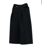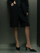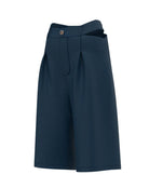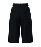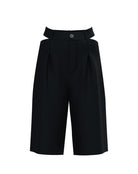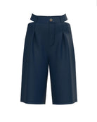 The Liza Bermuda is a statement piece that blends structure with movement. Its wide, mid-length silhouette features gently curved side slits on both legs — a subtle yet striking detail that brings visual fluidity, lightness, and a modern edge to the design.