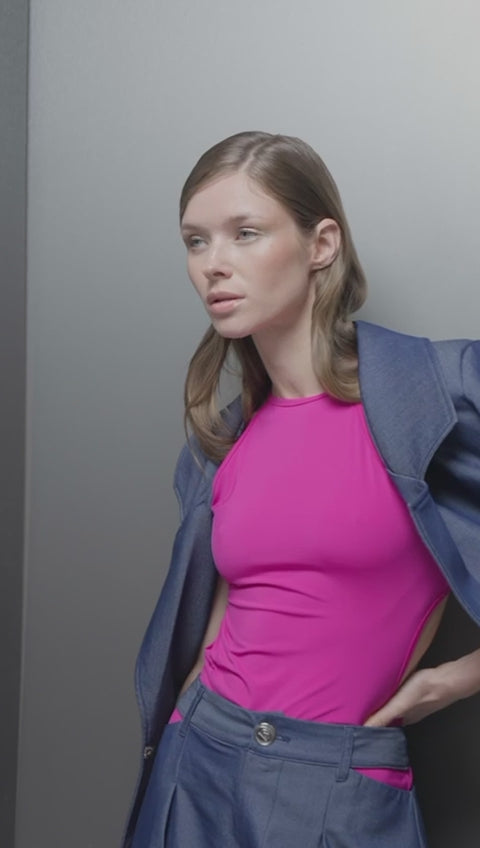 Crafted from a structured yet soft fabric and fully lined for a refined finish and added comfort, it showcases front pleats that enhance volume with intention. A branded button adds an exclusive touch, while clean waistband and faux back pockets complete a look designed to stand out effortlessly.