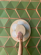 The Agave Arena Cordobés captures the warmth of sunlit sand and the resilience of jungle foliage. Handcrafted with artisanal detail, its soft beige tone is elevated by bold white fan motifs — a balance of grounded elegance and striking design.