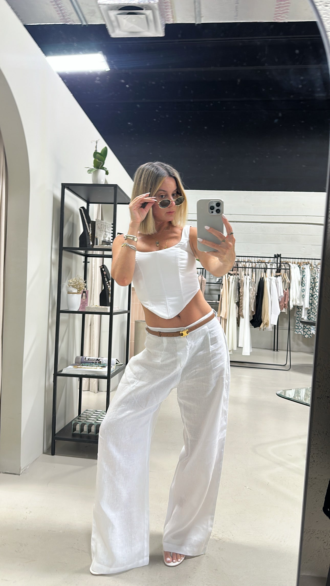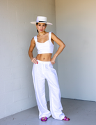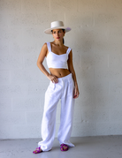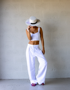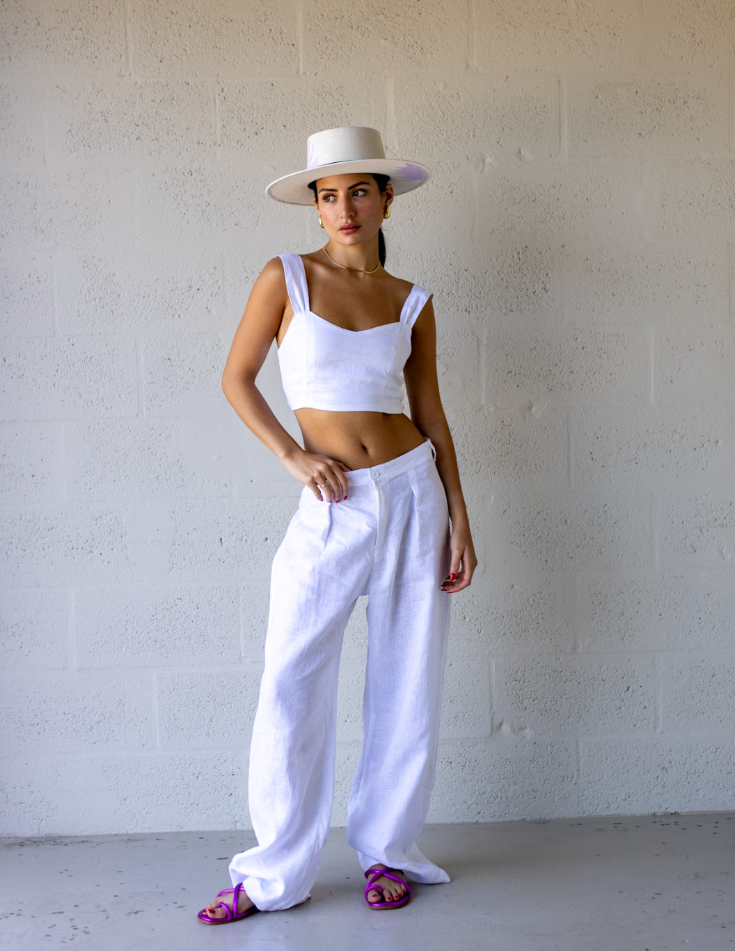 Our Dani Linen Pants are the perfectly effortless wide leg linen pant to complete your staple wardrobe. They feature a front button and zip with side pockets.