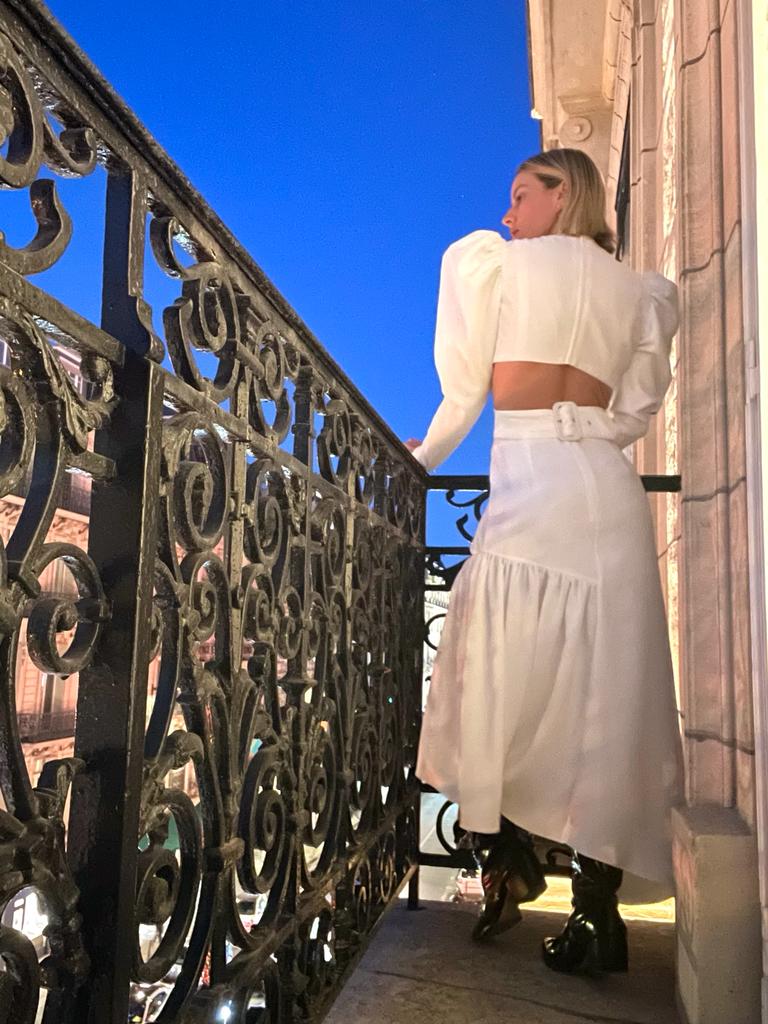 - pair it with our Flor de Laguna top with cutouts at the waist, high cup sleeves and inlaid back belt
