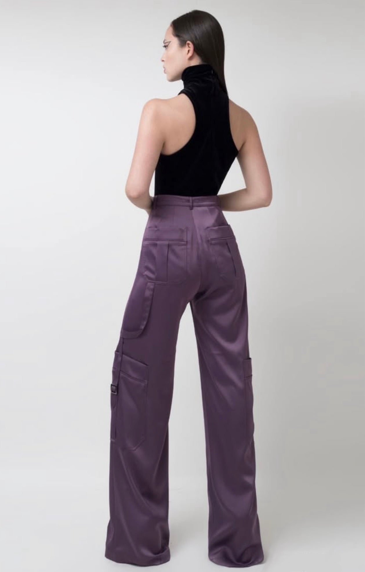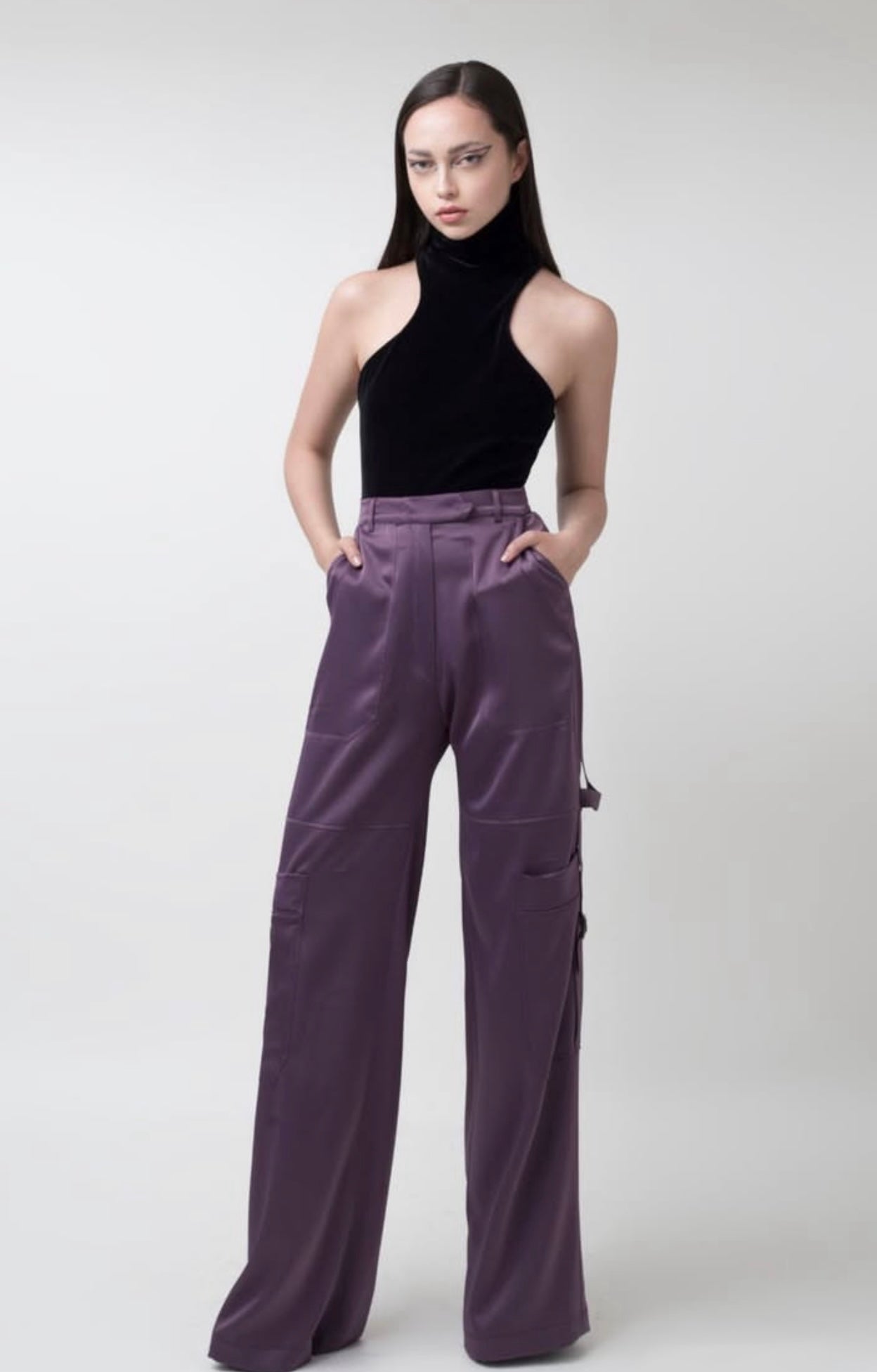 Colombia Moda Exclusive – Bold meets sleek in the Solari Cargo Trousers. With a wide-leg silhouette, luxe satin finish, and functional pocket detailing, they blend street-style confidence with runway polish. Now available in Black, Lavender, and Blue — choose your vibe.