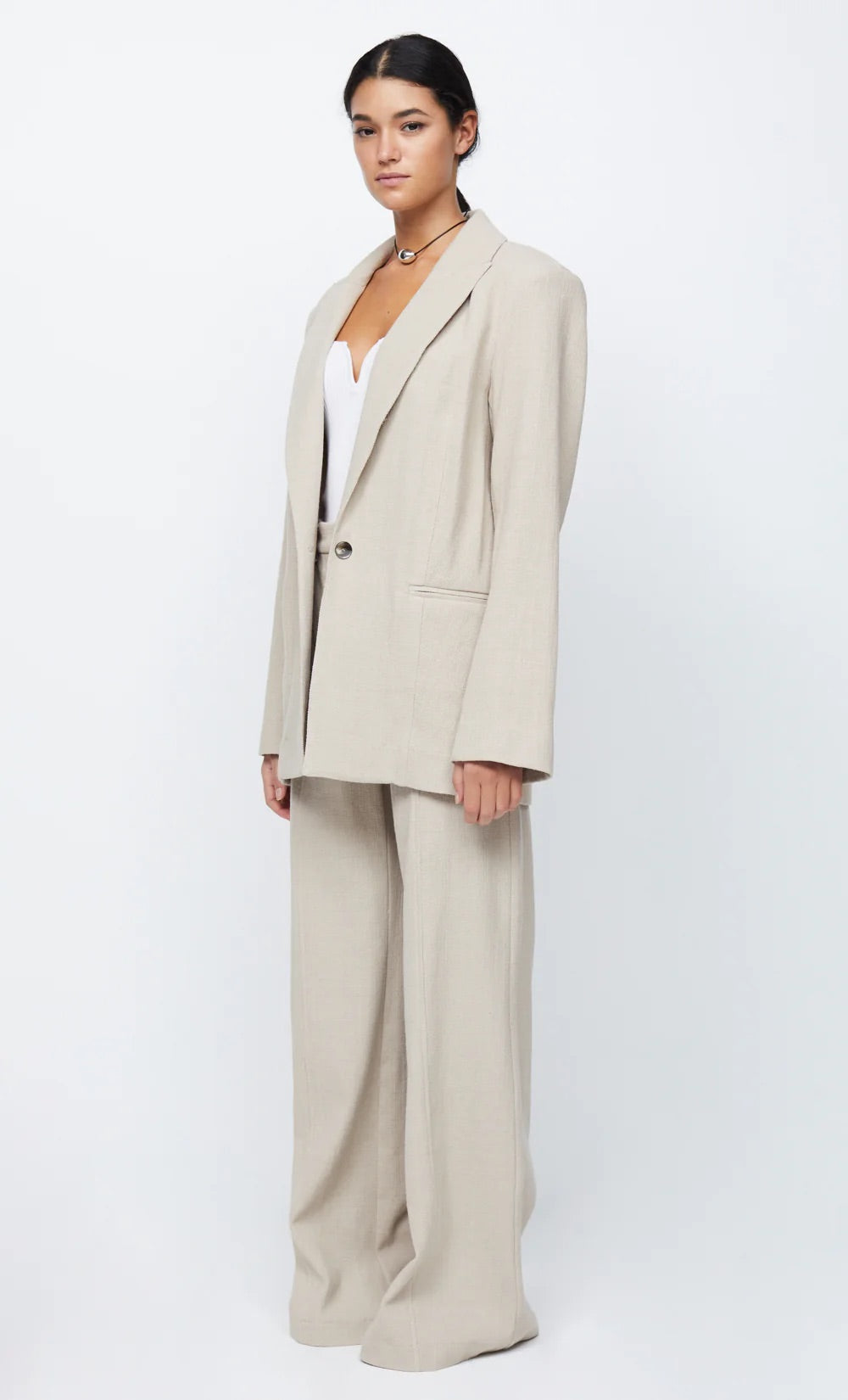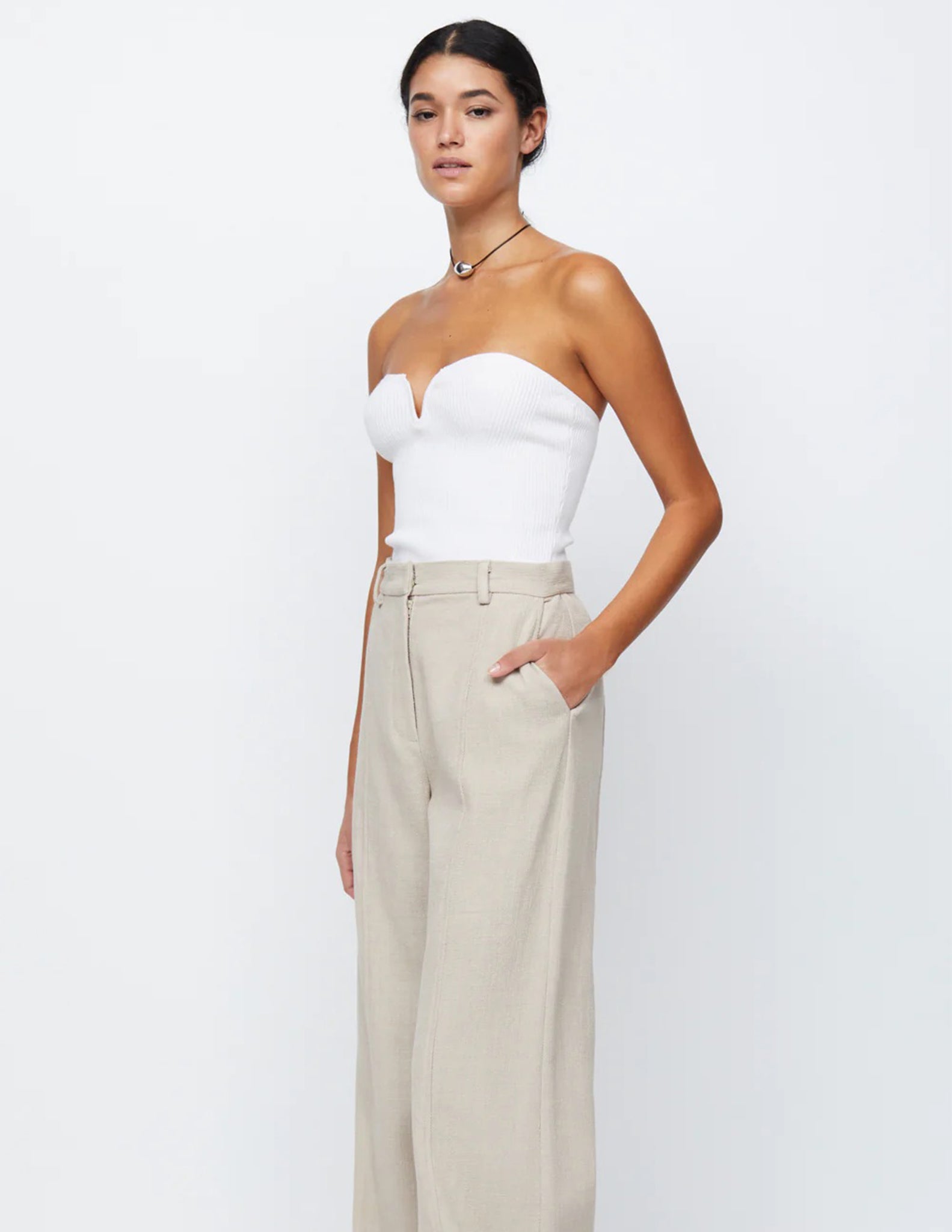 The Manon Pant are designed to sit at the high waist in a straight leg silhouette. The pant feature centre leg seams, belt loops, in-seam pockets and single welt pockets at back. Styled with our Vesna Knit Top / Manon Blazer.