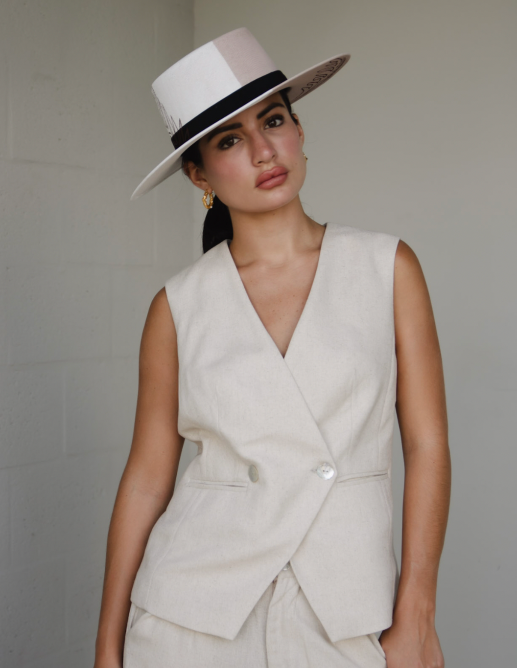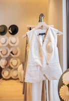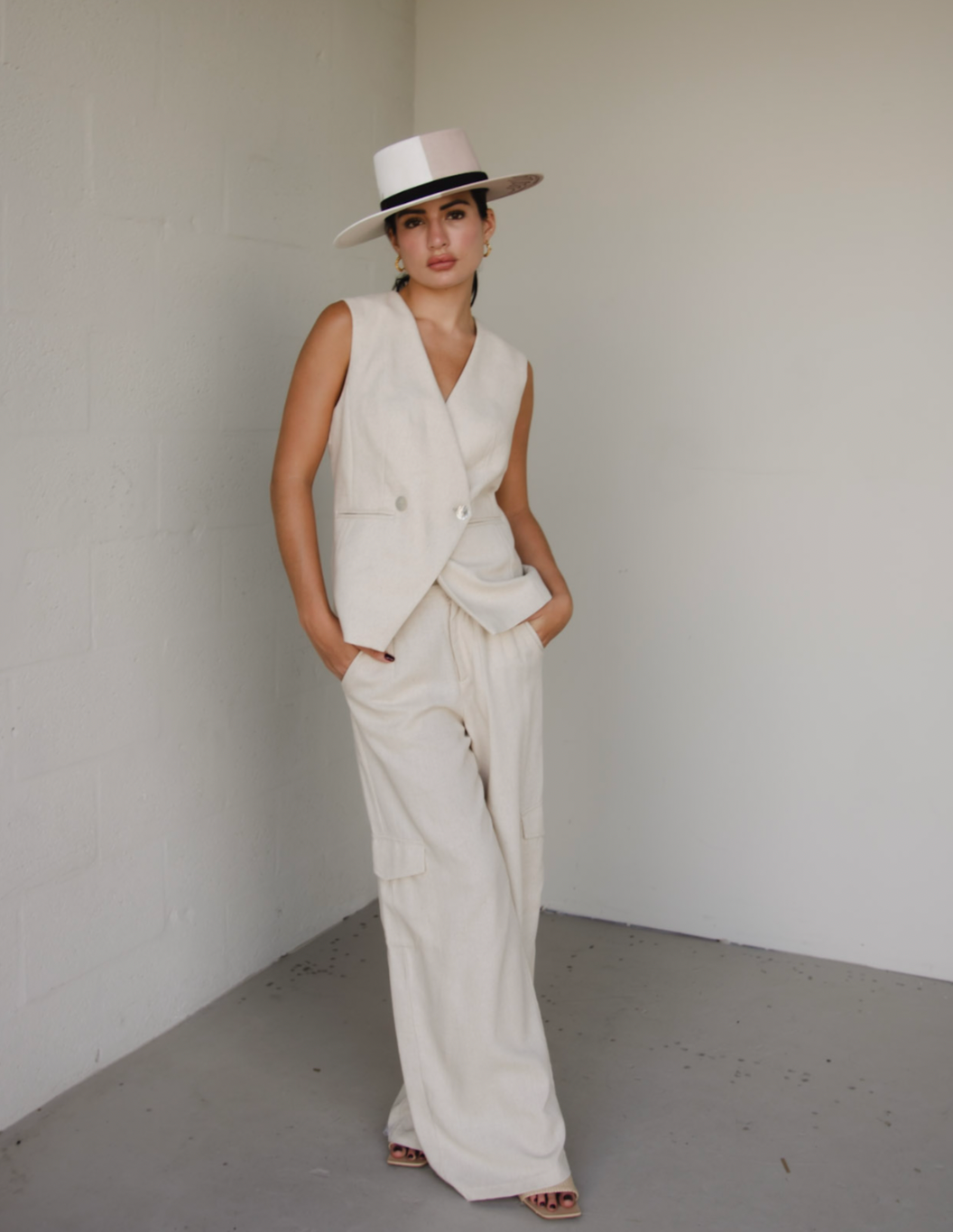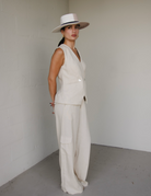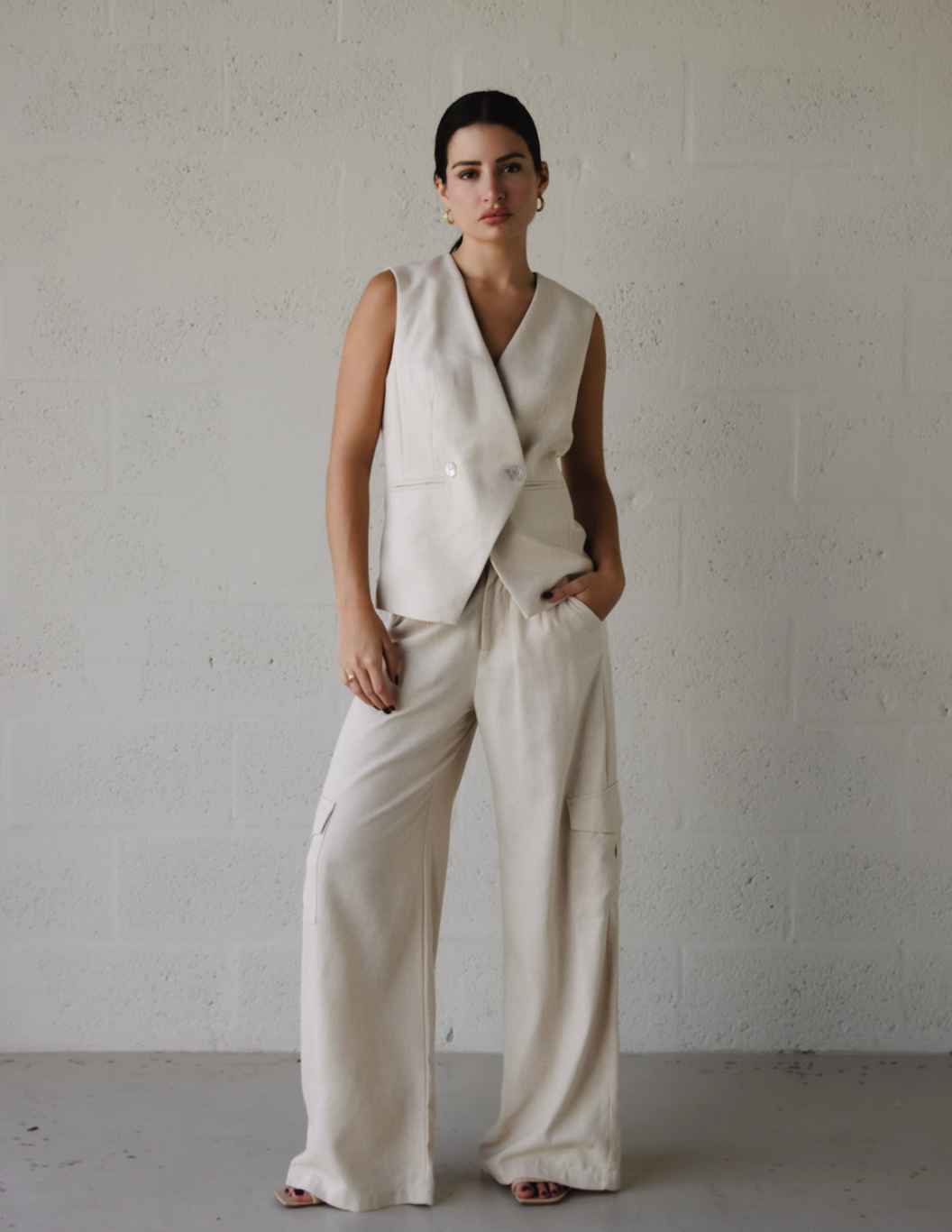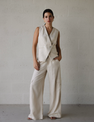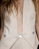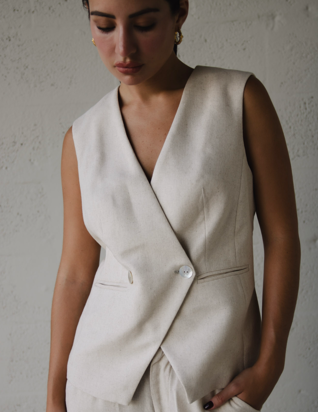 Indulge in the luxury of this 100% linen long vest, adorned with exquisite mother of pearl buttons. Handcrafted in Peru with impeccable attention to detail, this double-lined piece embodies the highest standards of craftsmanship.