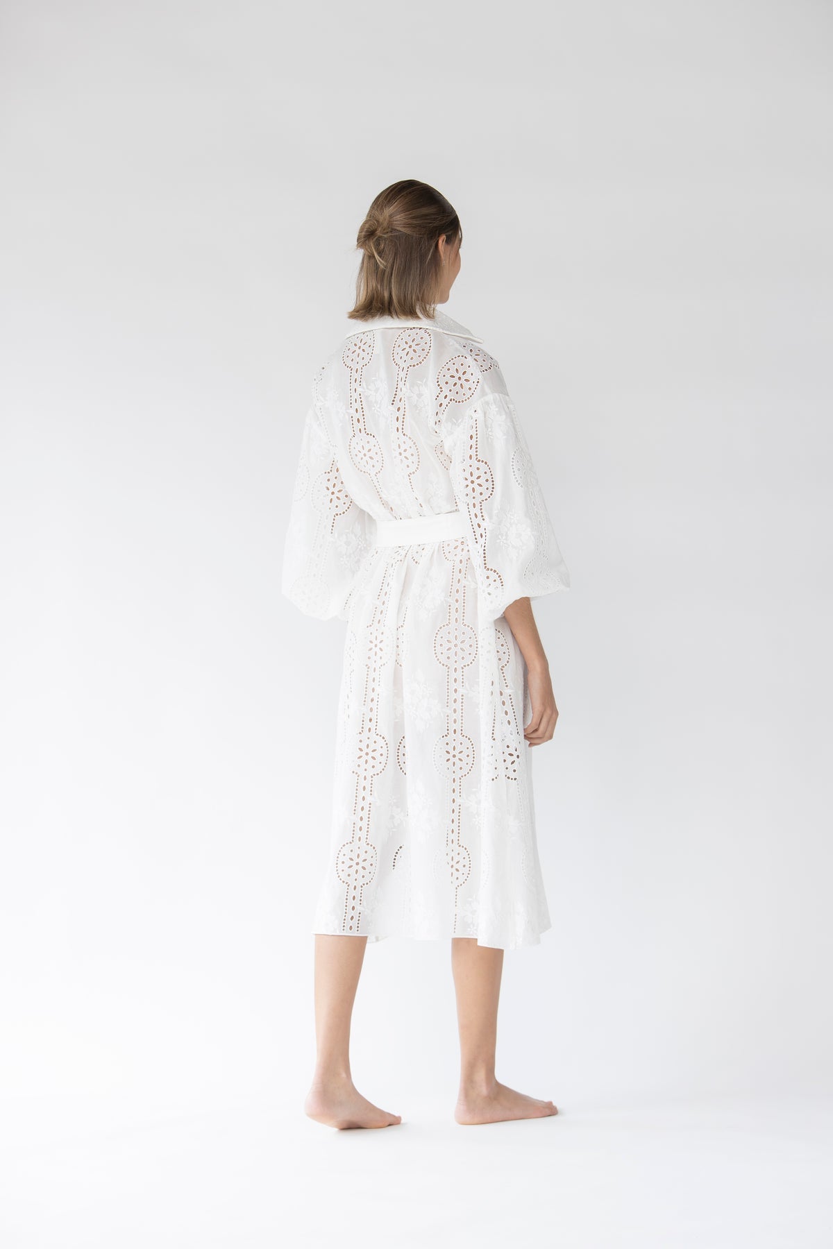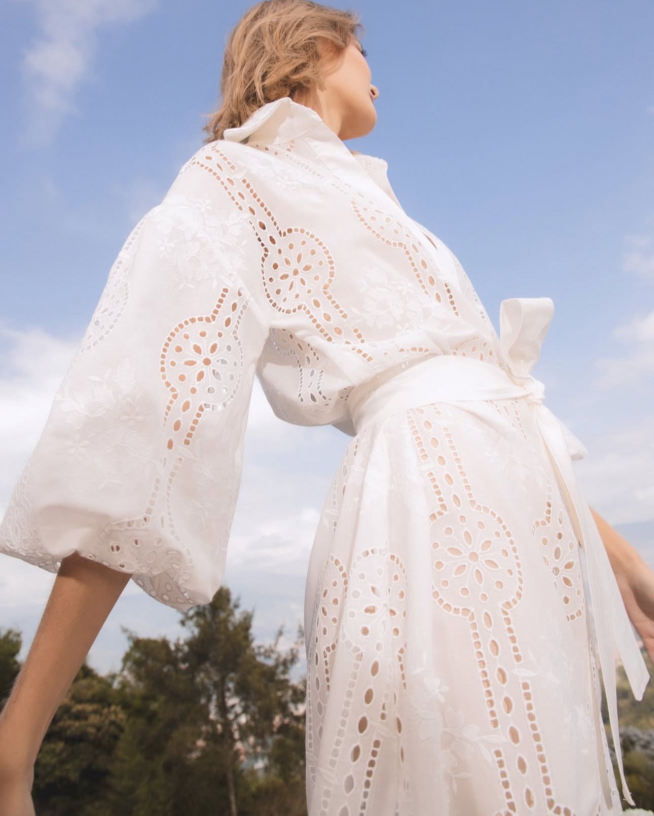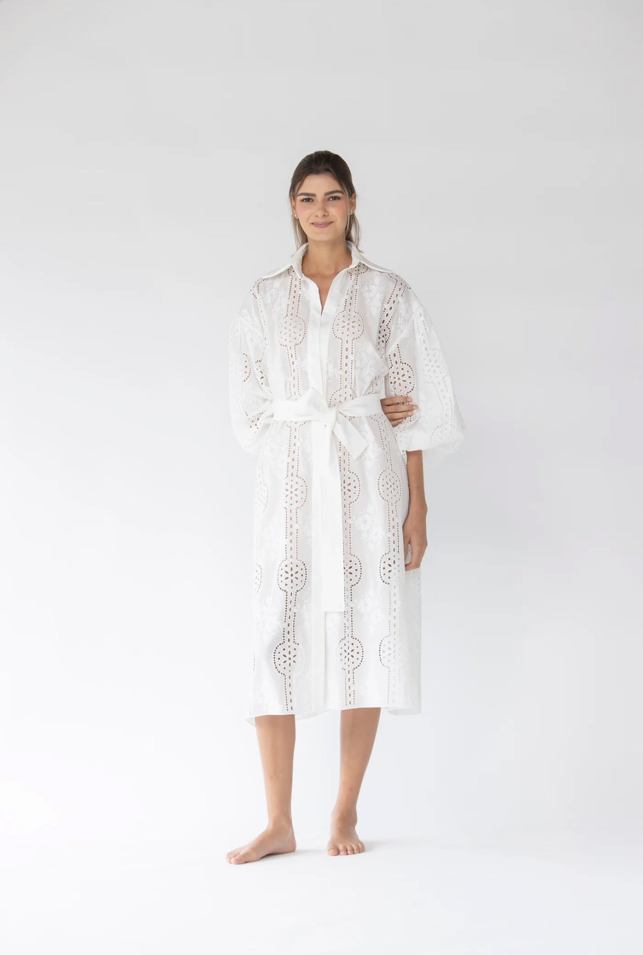 Light, airy, and unforgettable. The Beam Dress is a white eyelet maxi with delicate detailing and a flowing silhouette. Fully lined and effortlessly elegant, it’s your go-to for warm days, special moments, and everything in between.