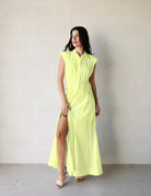 Elevate your wardrobe with our Carolina Dress. This sophisticated midi shirt dress combines luxury and style, making it a must-have for the modern woman. Crafted with the finest materials, it exudes elegance and refinement. Make a statement with our sofisticado design and elevate your fashion game.