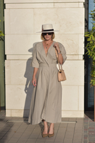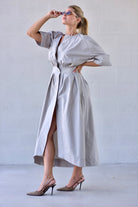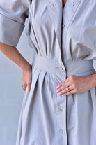 Indulge in effortless sophistication with the Carmen Dress, a timeless piece designed for the modern woman. Crafted from premium fabric, this dress features a structured yet fluid silhouette that flatters every movement. The oversized sleeves, button-down front, and cinched waist create a perfect balance between relaxed comfort and tailored refinement.