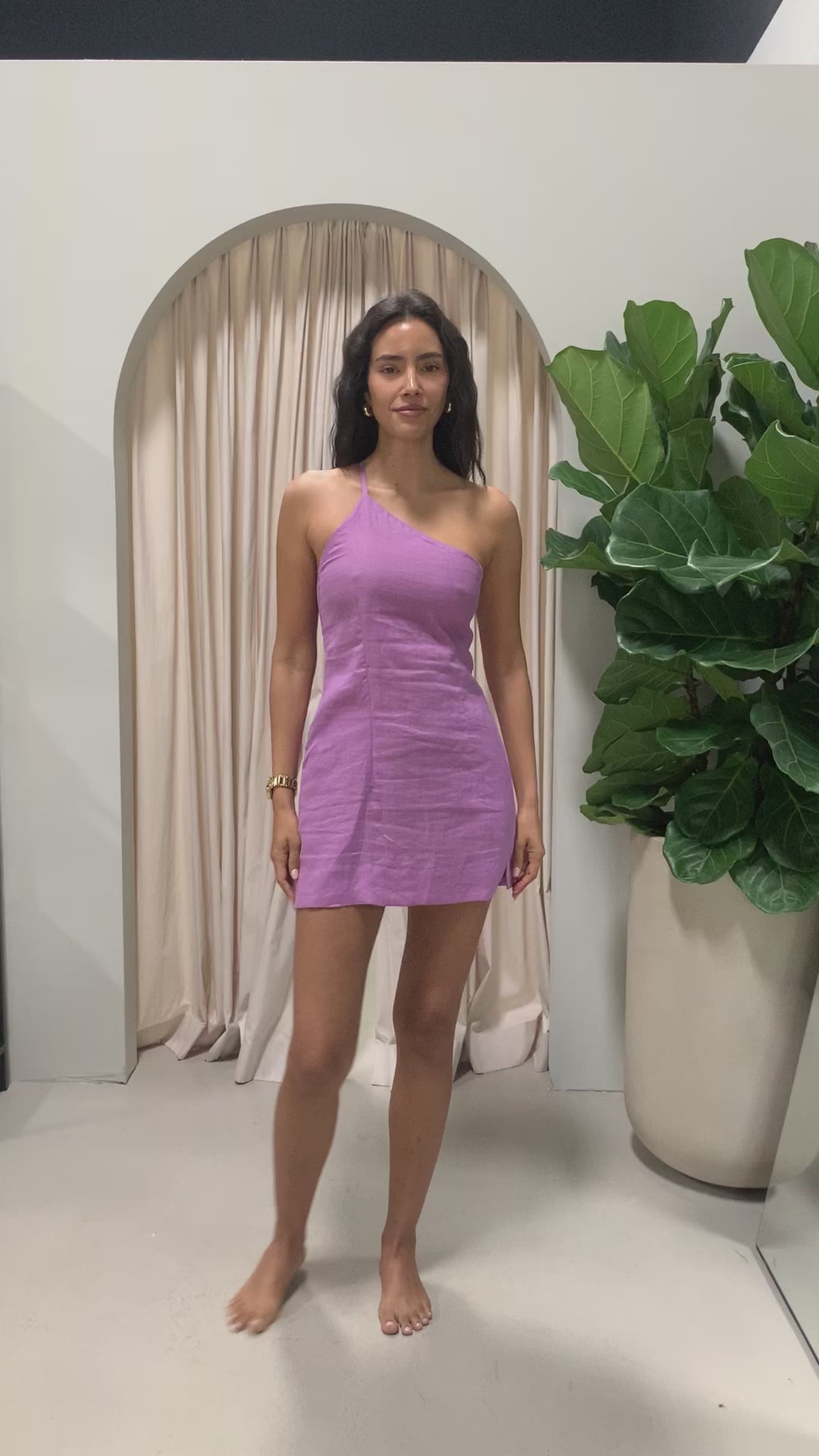 The Gili one shoulder dress features a structured bust, slim skirt with pockets and a flattering waist cut-out.