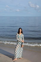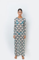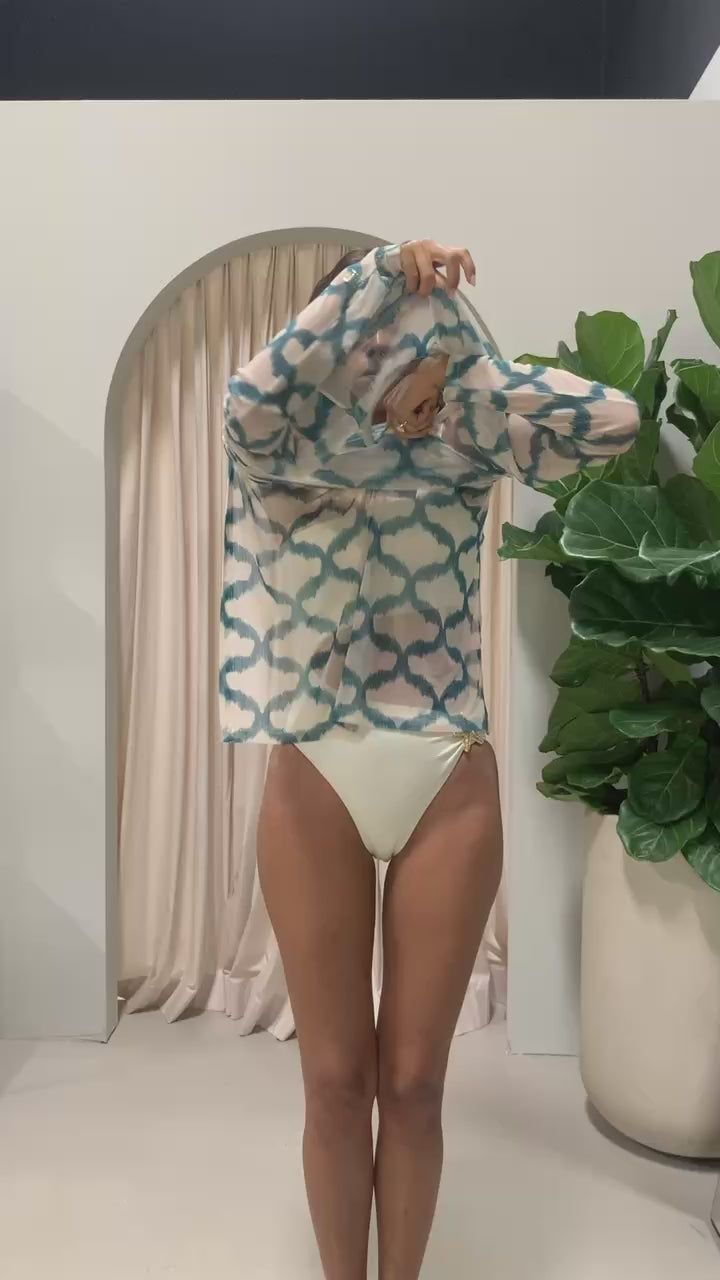 The Isla Mesh Cover-up is a lightweight, long-sleeve sheer dress with a cool abstract print in soft neutral and blue tones. The flowy fit makes it perfect for layering over a bikini at the beach or pairing with a slip dress for a laid-back, stylish vibe. It’s effortlessly chic and easy to throw on when you want to look put together without much effort. Style it with flat sandals and a straw bag for a beachy feel, or dress it up with gold jewelry and sleek slides for a casual day out. It’s the kind of piece that makes any outfit feel a little more elevated.