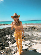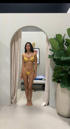 This sunny swim style features a supportive underwire top with adjustable straps and a cheeky bottom.