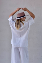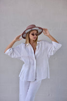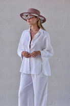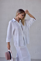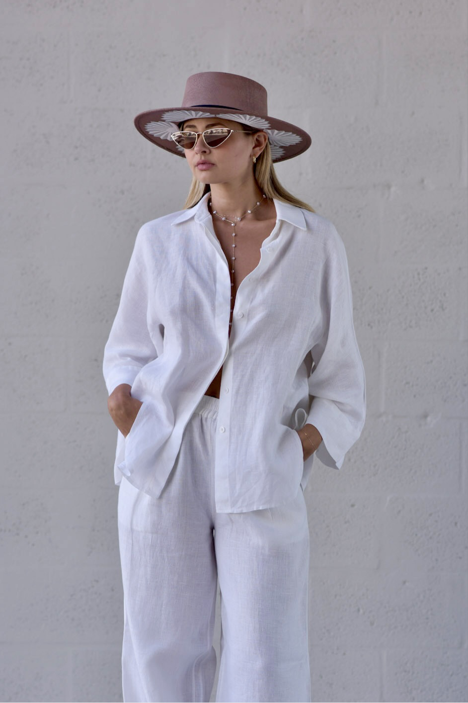 Indulge in high fashion with the Lasina Top, a luxurious white linen shirt. Embrace the elegance of crisp lines and breathable fabric, perfect for any summer occasion. Elevate your style with this exclusive piece, designed to enhance your wardrobe with sophistication and timeless beauty.