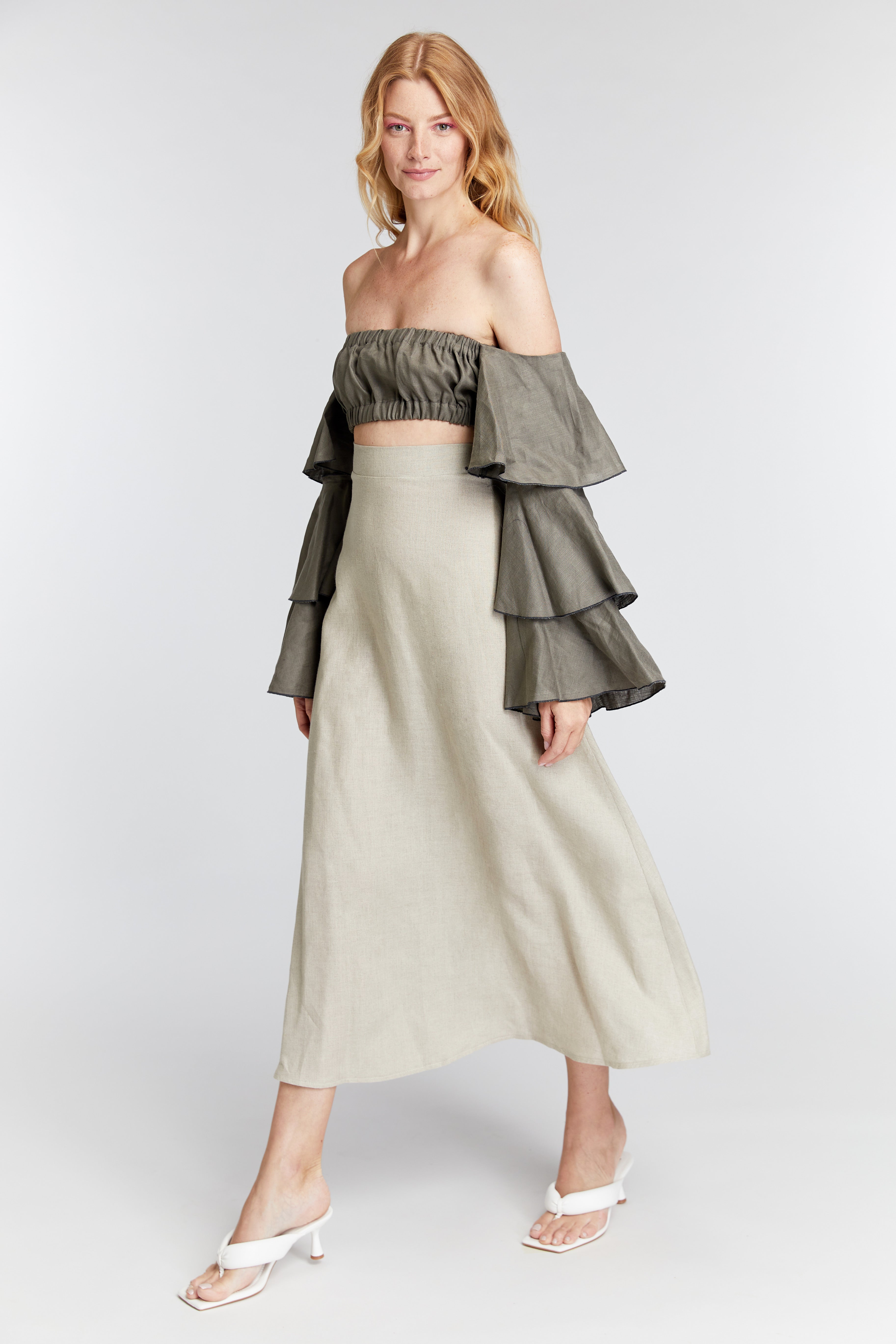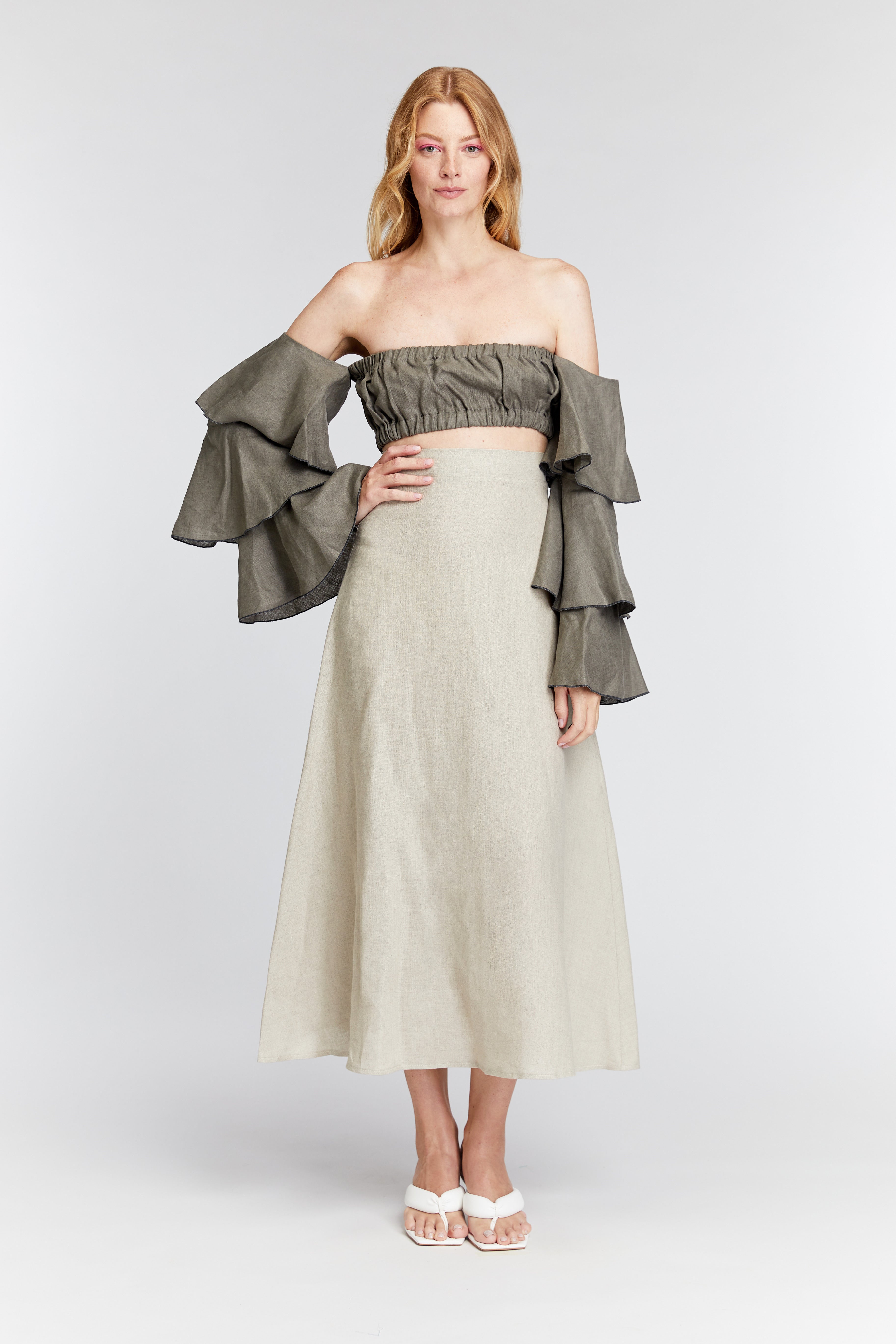 The Taro skirt offers a breezy, effortless style perfect for warm days. The lightweight linen fabric provides comfort and breathability, while the flowy silhouette creates a relaxed, flattering fit. Its versatile design can be dressed up or down, making it ideal for both casual outings and more dressed-up events. With its timeless and natural look, this skirt is a must-have addition to your summer wardrobe.