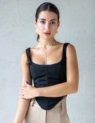 Noir Amature is a corset with a princess cut and underwire that accentuates the silhouette.